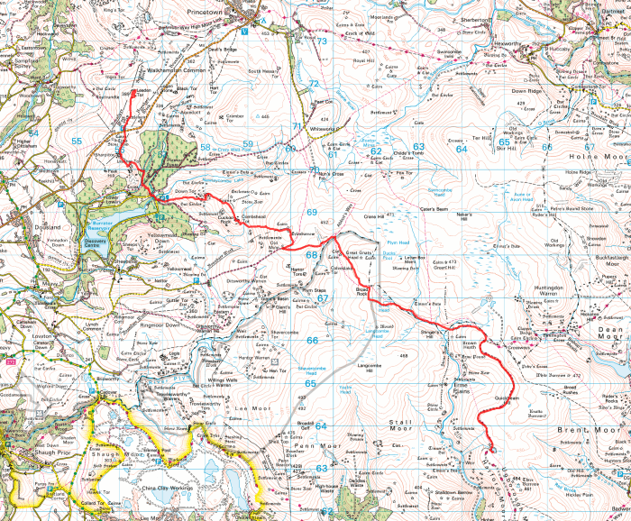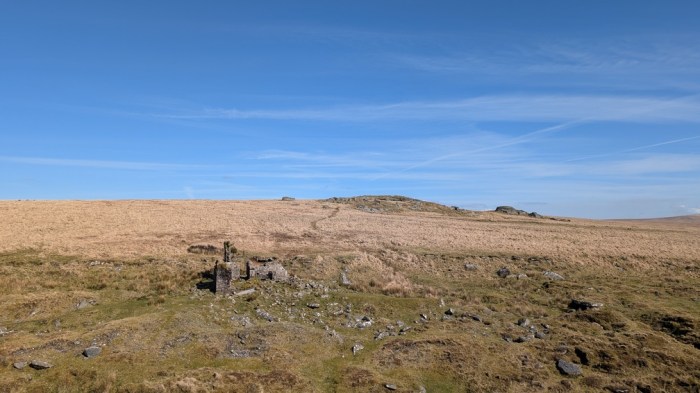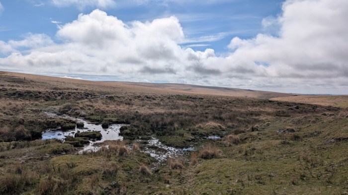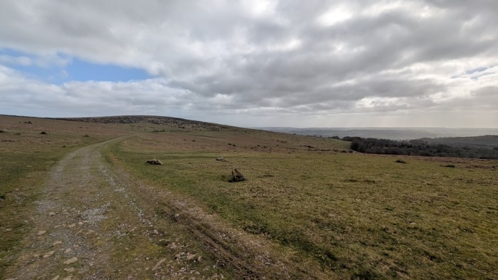 The issue now was thinking ahead to my overnight camp. I was just about to enter a patch of Dartmoor where the camping zone was a bit sparse, so I needed to either slow myself so I could stop before I left it, or push myself so I’d make the resumption of the zone. And at the same time, I wanted to call in at Princetown, either this afternoon or the next morning. Thus I didn’t want to be too far from Princetown.