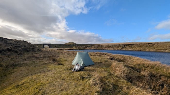 Ideally I’d have given them a bit more room, but I needed shelter and this was the last decent shelter before leaving the moor, so I went for it. Paul turned up soon after, bearing BEER, but not staying to camp.
