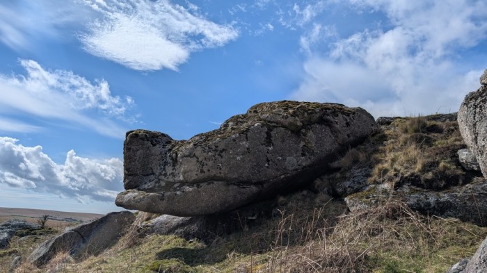 I stuck with the Two Moors Way as much as possible, it being the obvious and simplest way of making progress. I did detour off to visit Hangershell Rock, a great little tor, but which was far too early in the day’s walk to consider as my overnight stopping point, as well as not offering much in terms of respite from the wind.