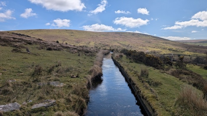 I chose the descent and reascent, and remembering the time I’d come down off Leather and Lower Leather Tors through a horrible brackeny mess, decided to find a way back up using the footpaths through the woods. Which worked really well. I picked up some water from the Devonport Leat before striking up through the forest to emerge onto the slope east of Leather Tor. No difficult ground, just a bit of an upwards slog late in the day.