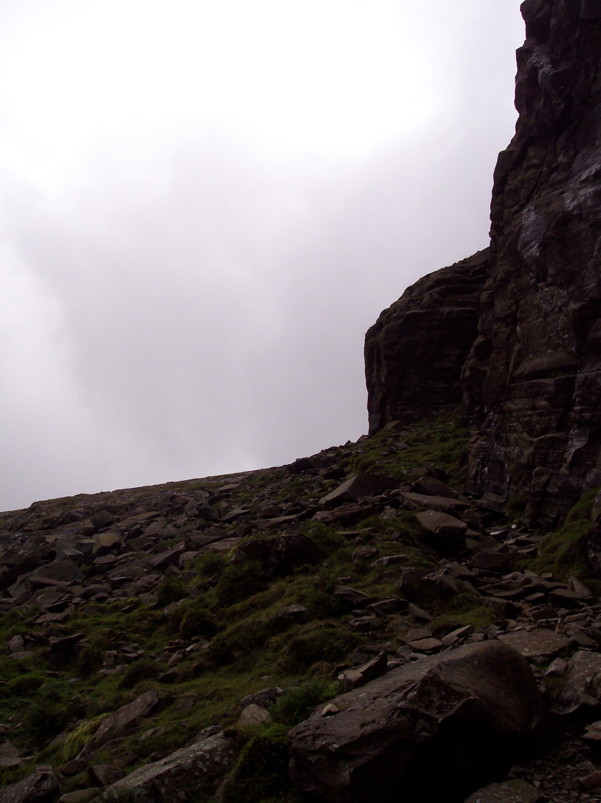 Climb up, occasionally using hands to propel yourself up the scree, or if feeling daring walk on the Slab itself. DON’T DO THIS IF IT’S WET, unless you want to end up falling into Langdale.