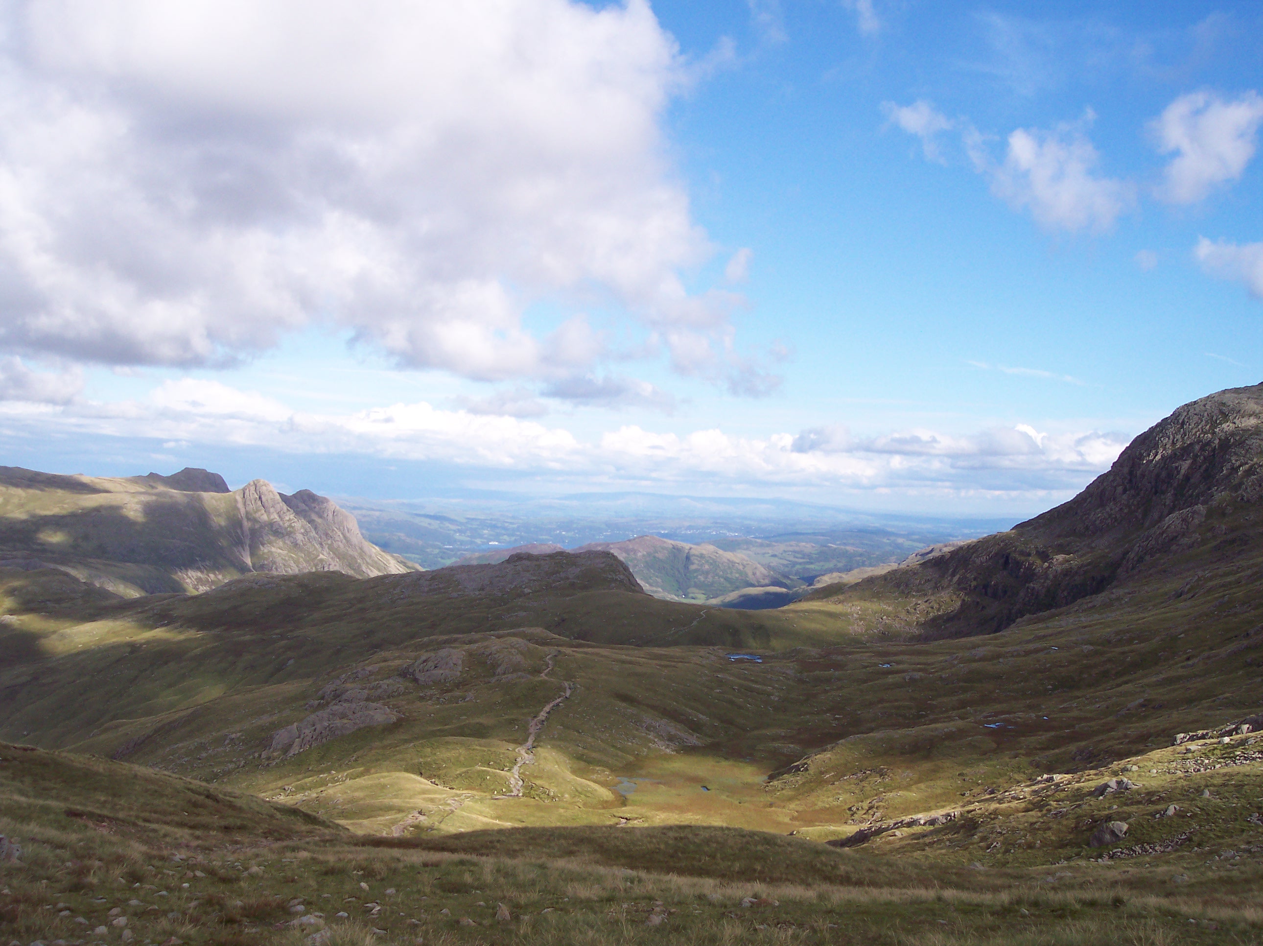 Make sure that on the way you take a look back down into Langdale, where you get a great view of the Langdale Pikes to the left and the valley stretching away into the distance. This is one of my favourite views in the whole of the Lake District.