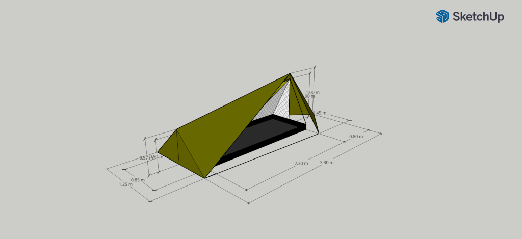 This will be a side-opening shelter that’s higher at the head end than the foot end. It will be capable of being opened along its length or like a tunnel.