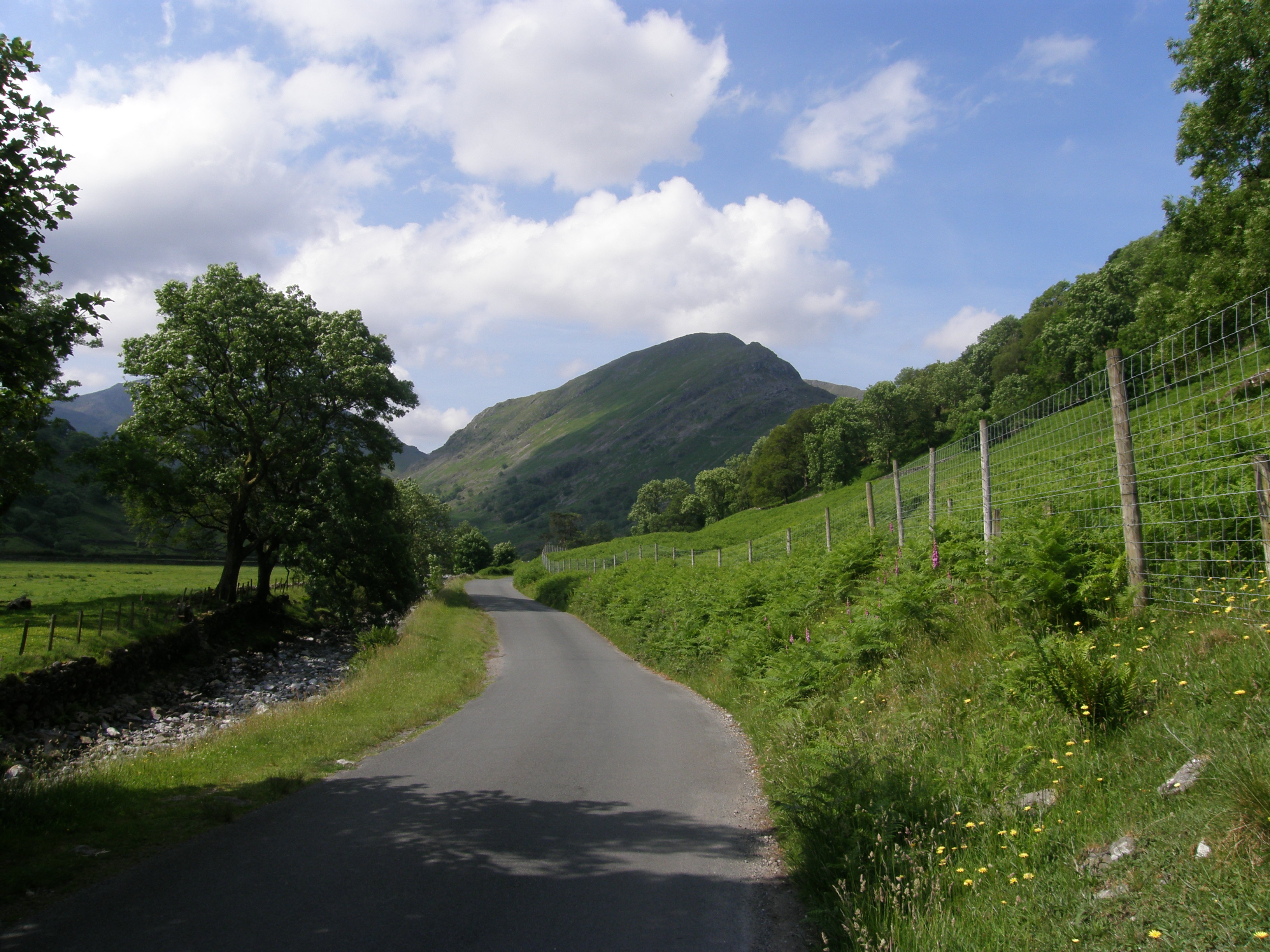 From the bus stop at Seatoller (a), cross the road and follow the lane to Seathwaite Farm (b)