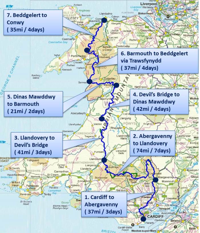 How do you go about planning such a long walk ? Leaving aside the doing the walk itself, which is a formidable enough challenge in its own right, the thought of also having to turn a blank sheet of paper into a fully formed plan for the walk would definitely scare some people off. For … Continue reading Planning the Cambrian Way – Part 1: The Approach