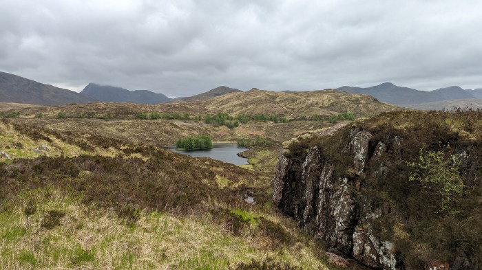 Last night was not a very sheltered pitch, and the tent was reeling under wind yet again. As we pack up it starts raining - even though we've largely extricated ourselves from our previous spot of bother, the weather has not given up the battle. It is, however, an easy walk along the track, penetrating … Continue reading TGO Challenge 2022 – Days 4-5: Headwinds